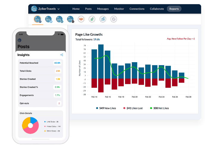 aby analizować wydajność mediów społecznościowych za pomocą Zoho Social.